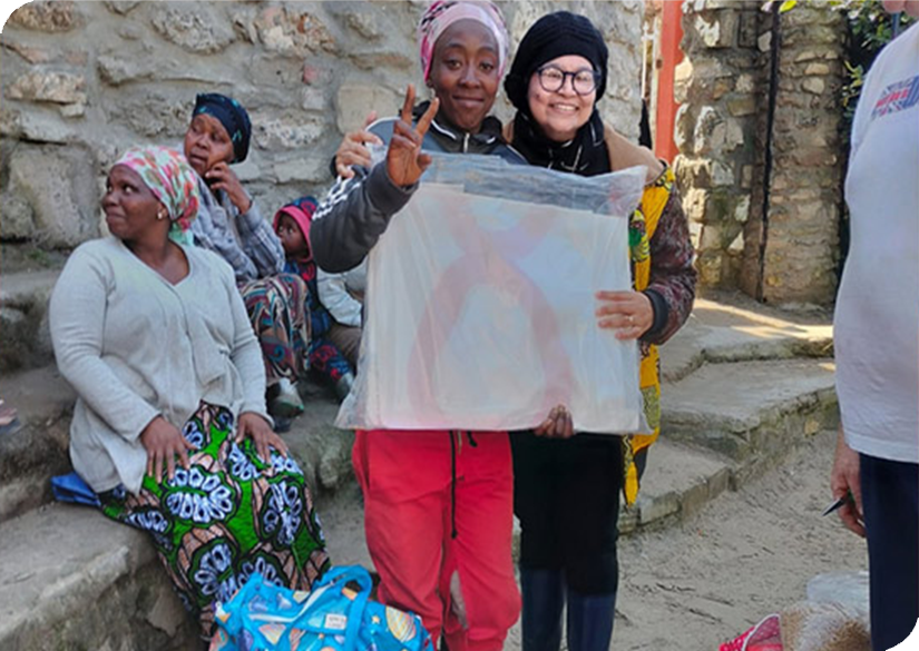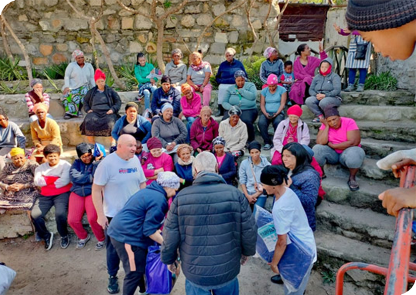 Addressing immediate physical needs through food distribution and clothing drives, connecting relief to ongoing care.